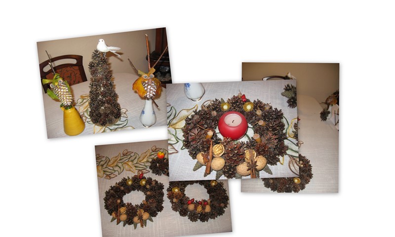 10 listopada 2015 „Kobiety z pasają” są w tej chwili pochłonięte wykonywaniem szyszkowych stroików. W galerii zdjęć prezentuję tylko niektóre prace, bo nie chcę zepsuć niespodzianki. Część naszych prac będzie prezentowana w naszym kościółku w adwent, a potem, na Boże Narodzenie, zaprezentujemy wszystkie nasze dzieła. Proszę więc o cierpliwość i wyrozumiałość. Zachęcam również wszystkich (nie tylko panie), którzy lubią majsterkować, do udziału w naszych spotkaniach. W okresie jesienno-zimowym spotykamy się w poniedziałki o 16.00.